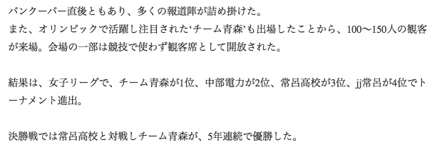 実はこの中学生チームはトリノオリンピックで日本代表だった『チーム青森』を予選リーグで撃破するというどんでん返しをみせたのです。